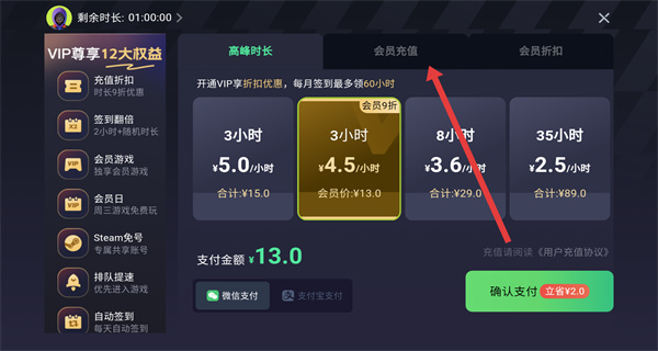 3、在充值頁(yè)面點(diǎn)擊“會(huì)員充值”,選擇“7天會(huì)員”選項(xiàng)。