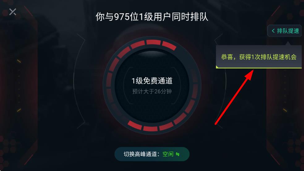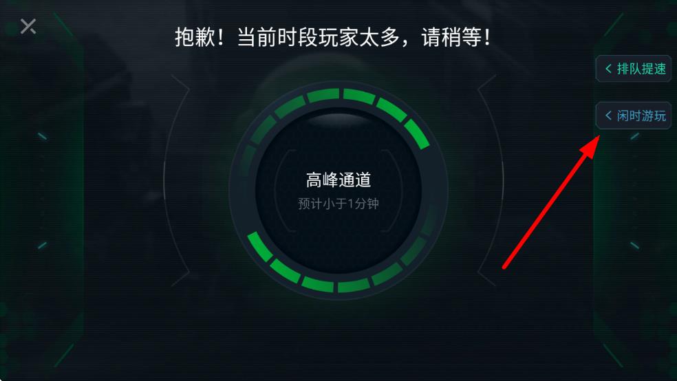 3、若當(dāng)前排隊(duì)人數(shù)眾多,可在排隊(duì)界面點(diǎn)擊閑時(shí)游玩,選擇玩家較少的時(shí)段,從而增加秒進(jìn)游戲的幾率。