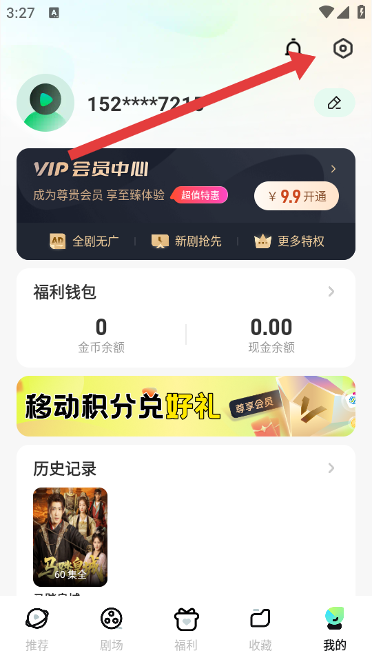 1、在星芽短劇我的頁面,點擊右上角的設置圖標,進入設置的界面。