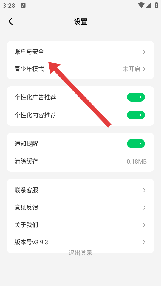 2、在設置頁面,點擊賬戶與安全的選項,進入賬號與安全設置界面。