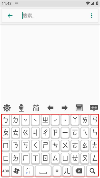 3、設置完成后,調(diào)出超注音鍵盤,可看到其獨特的按鍵布局。