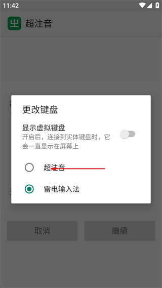 2、在更改鍵盤界面選擇超注音選項,將其設為預設輸入法。