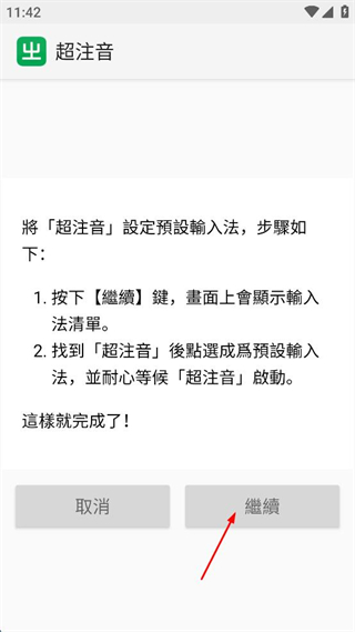 1、打開超注音軟件,點擊繼續(xù)按鈕,彈出更改鍵盤界面。