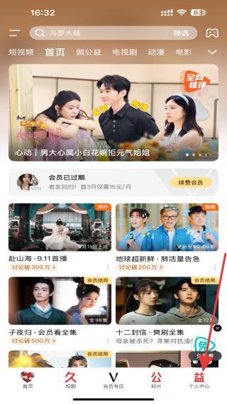 1、打開騰訊視頻軟件,點擊底部個人中心的功能按鈕。