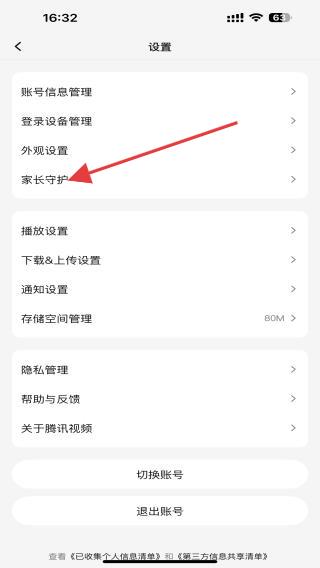 3、在設(shè)置的頁面內(nèi),找到并點擊家長守護的功能按鈕。