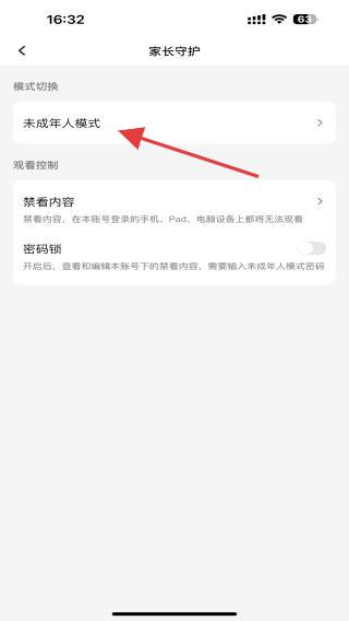 4、點擊進入后,在模式切換下點擊未成年人模式即可切換成功。