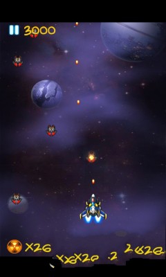 以星際為題材的飛行射擊類手機(jī)游戲,游戲簡潔而素雅,簡單的場景,簡潔的畫質(zhì),經(jīng)典的玩法,不斷進(jìn)行射擊,只要你想喜歡,只要你想要,就可以進(jìn)行射擊啦,趕緊來上手吧。濃郁的太空射擊玩法,不斷迎面而來的敵機(jī),不斷射擊的玩法,面對(duì)boss,也可以那么的從容,還有炸彈作為后援,你無需要怕什么。