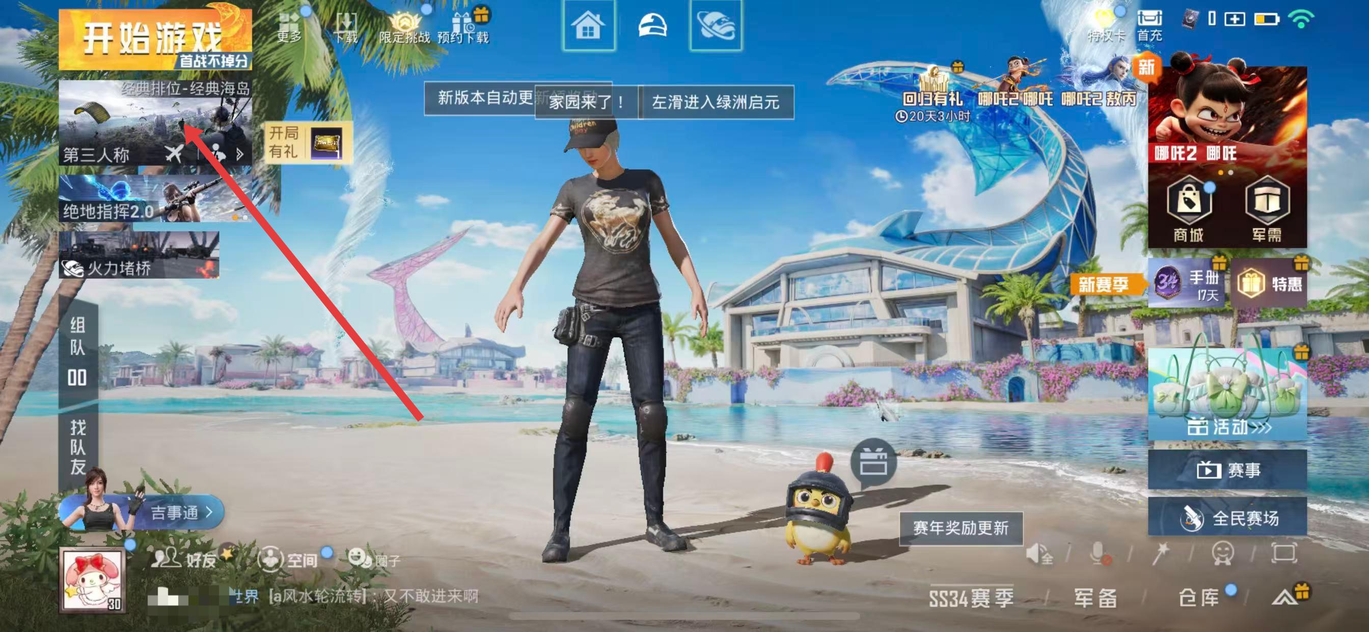 1、進入游戲主界面,點擊界面左上角的模式選擇按鈕。