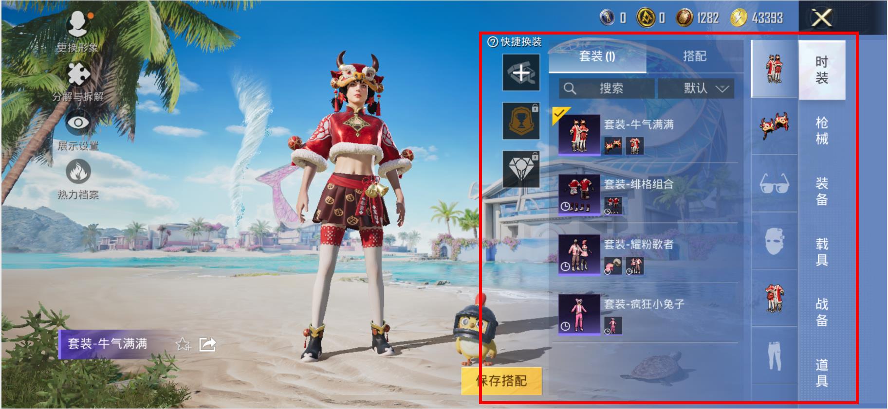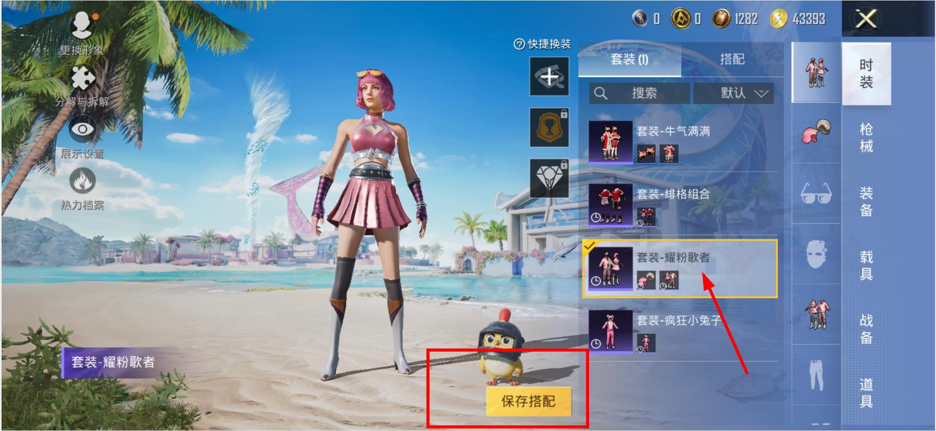 3、選擇好衣服后,點擊界面下方的保存搭配按鈕,即可完成換衣服并保存操作。