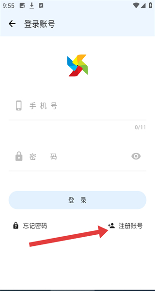 3、若在登錄賬號頁面,沒有賬號可以點擊注冊賬號按鈕,進行注冊操作。