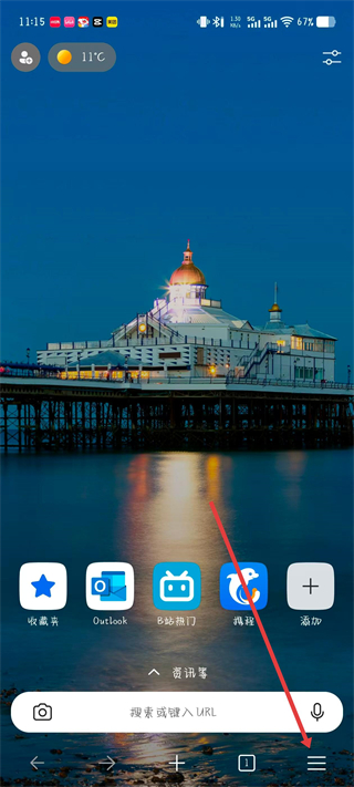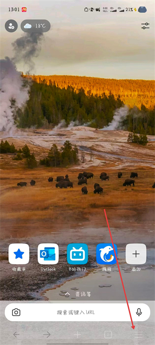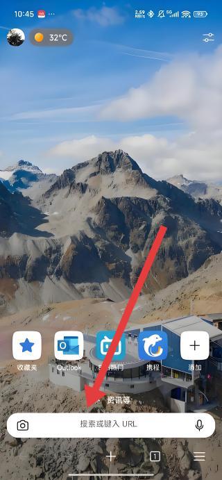 1、在瀏覽器主界面點(diǎn)擊底部搜索或鍵入U(xiǎn)RL欄,激活并使用輸入框,為查找信息做準(zhǔn)備,開啟搜索流程。