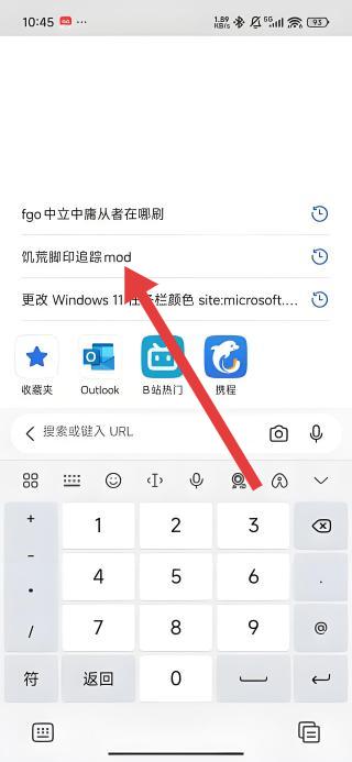 2、在激活的輸入框中輸入饑荒腳印追蹤mod,借助搜索歷史或聯(lián)想功能,定位游戲mod相關(guān)查詢內(nèi)容。