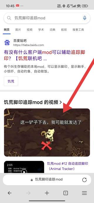 3、搜索結(jié)果加載后,點(diǎn)擊饑荒腳印追蹤mod相關(guān)視頻區(qū)域,查看該mod的功能、教程等游戲輔助信息。