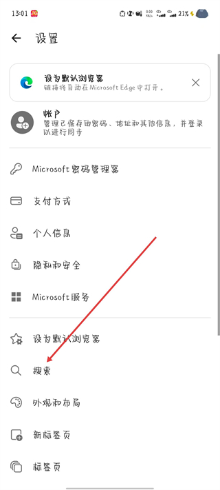 3、在設(shè)置頁面,點(diǎn)擊搜索選項(xiàng)。