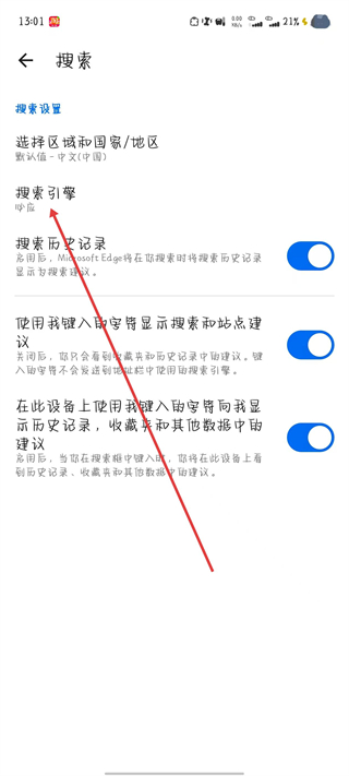 4、在搜索頁面,點(diǎn)擊搜索引擎選項(xiàng)。