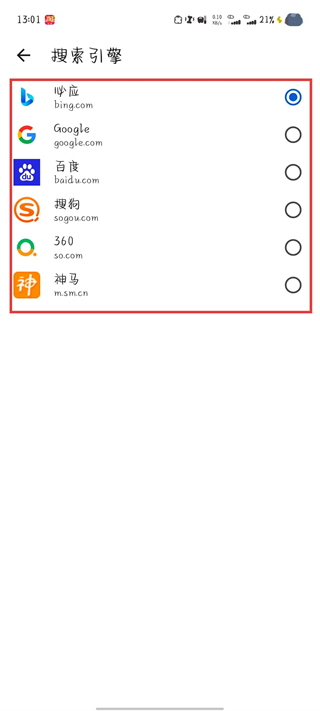 5、在搜索引擎頁面,選擇想要的搜索引擎。