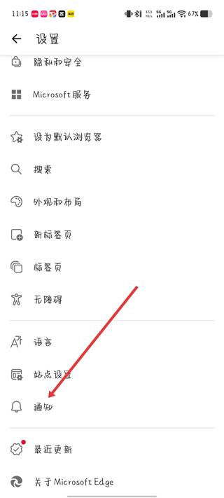 3、在設(shè)置界面里,找到通知選項(xiàng)并點(diǎn)擊,進(jìn)入通知相關(guān)設(shè)置頁面。