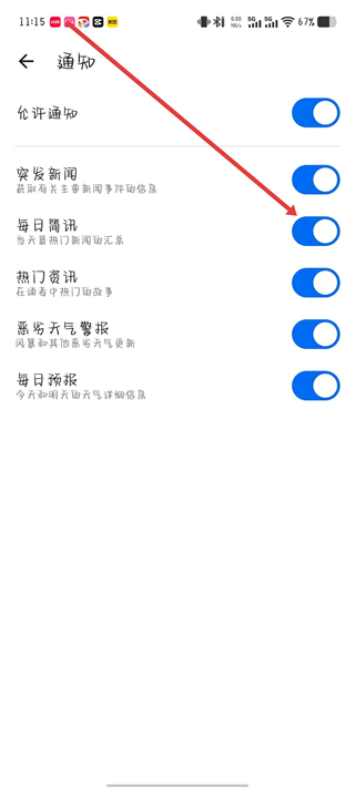4、在該頁面中,找到每日簡(jiǎn)訊對(duì)應(yīng)的開關(guān),點(diǎn)擊關(guān)閉即可停用功能。