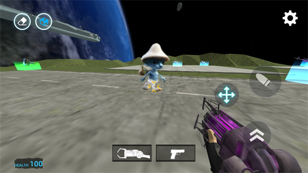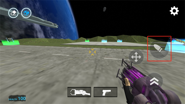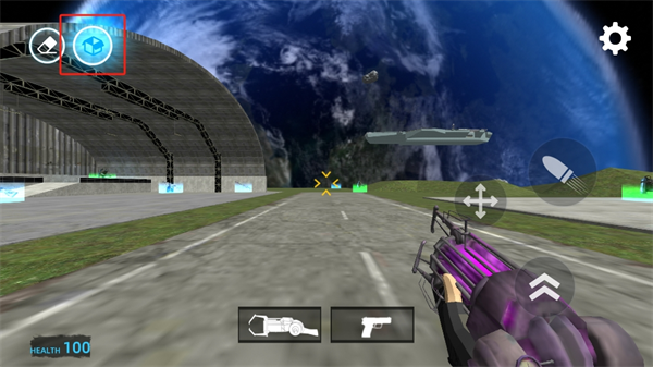 3、選擇后回到場景中,將手槍的瞄準(zhǔn)鏡瞄準(zhǔn)到想要放置的位置,并點擊子彈按鈕;