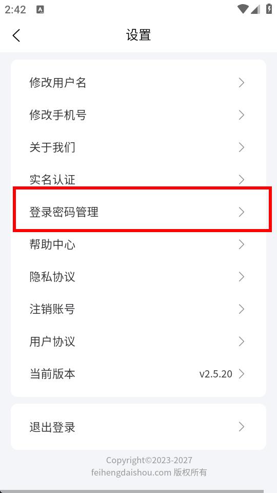 3、在設(shè)置頁面里,找到并點擊登錄密碼管理選項。