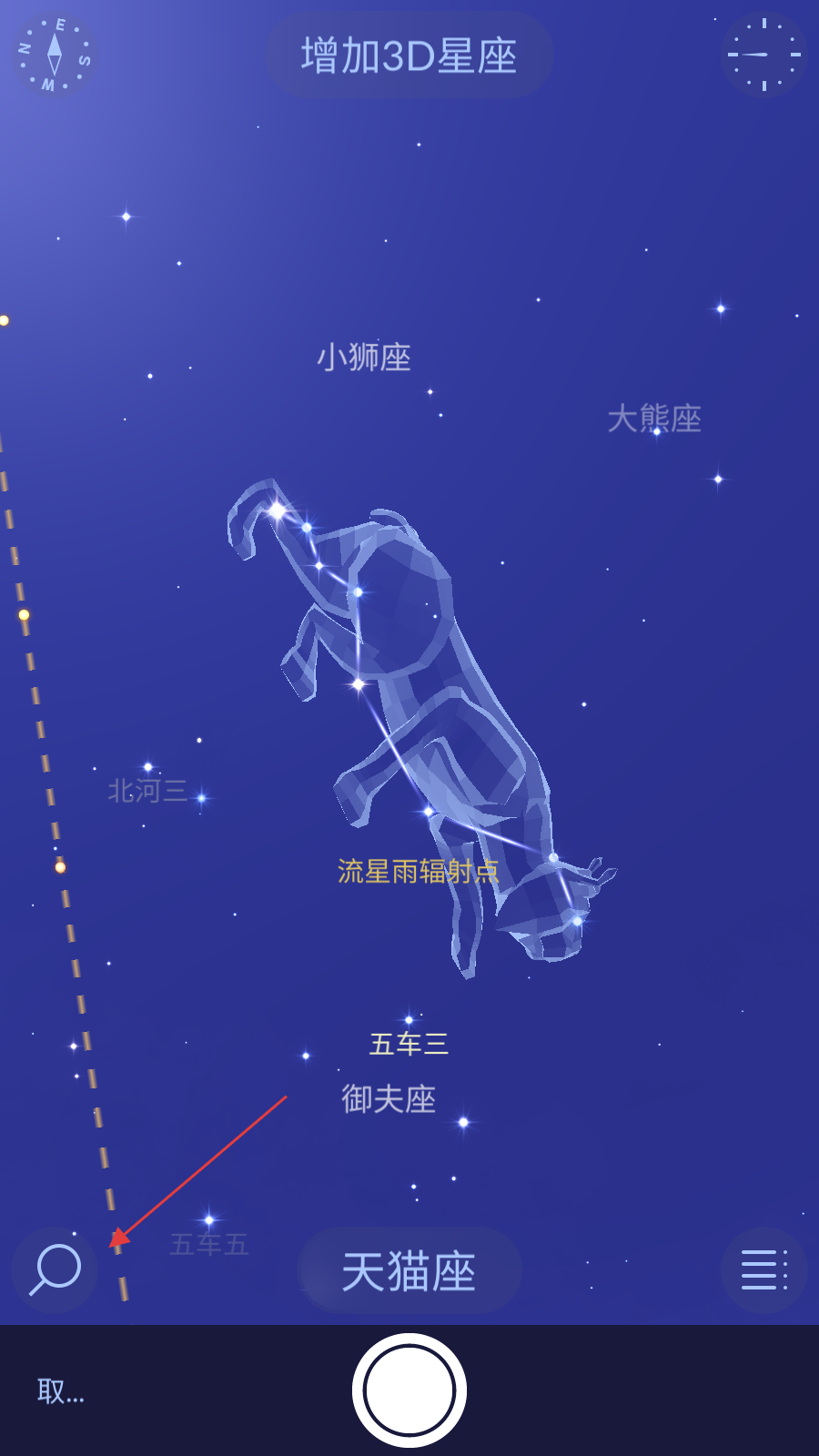 3、手機望遠鏡:將手機指向天空,軟件會根據(jù)你的位置和朝向顯示出相應的星星;