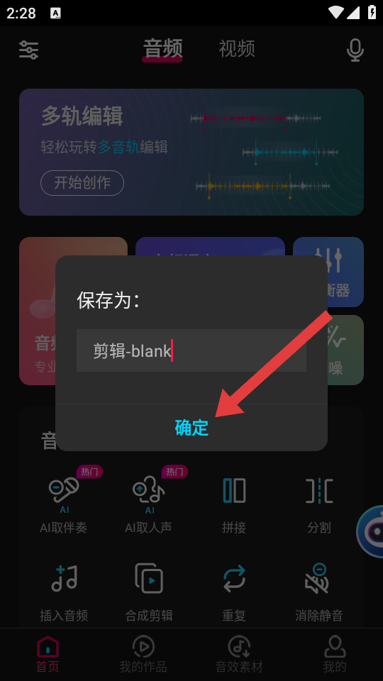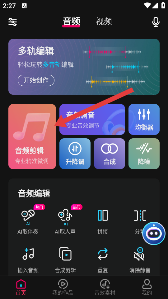 1、在音編美聲首頁,點(diǎn)擊音頻剪輯選項(xiàng),進(jìn)入音頻選擇的界面。