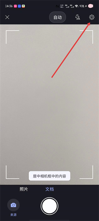 3、進(jìn)入相機(jī)掃描界面后,點(diǎn)擊右上角的設(shè)置圖標(biāo),打開相機(jī)掃描的設(shè)置頁面。