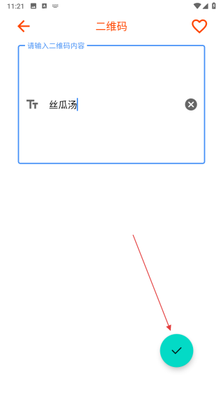 3、輸入內(nèi)容后,點擊界面右下角的綠色對勾按鈕,生成對應(yīng)的二維碼圖案。