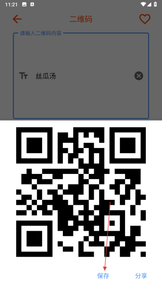 4、二維碼生成后,可點擊保存按鈕將其保存到設(shè)備,或點擊分享按鈕把二維碼分享給他人。