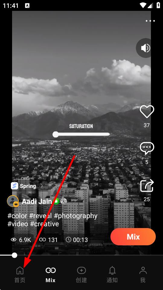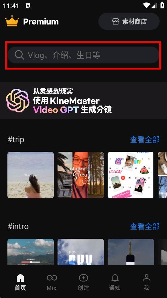 1、打開巧影APP進(jìn)入首頁界面,點(diǎn)擊底部導(dǎo)航欄中的首頁按鈕進(jìn)入素材搜索頁面。