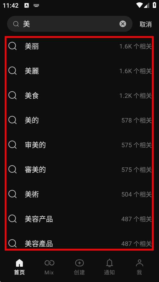 3、輸入關(guān)鍵詞后,下方會(huì)顯示相關(guān)搜索聯(lián)想詞,點(diǎn)擊合適聯(lián)想詞或直接點(diǎn)擊鍵盤搜索鍵,即可查看搜索結(jié)果。