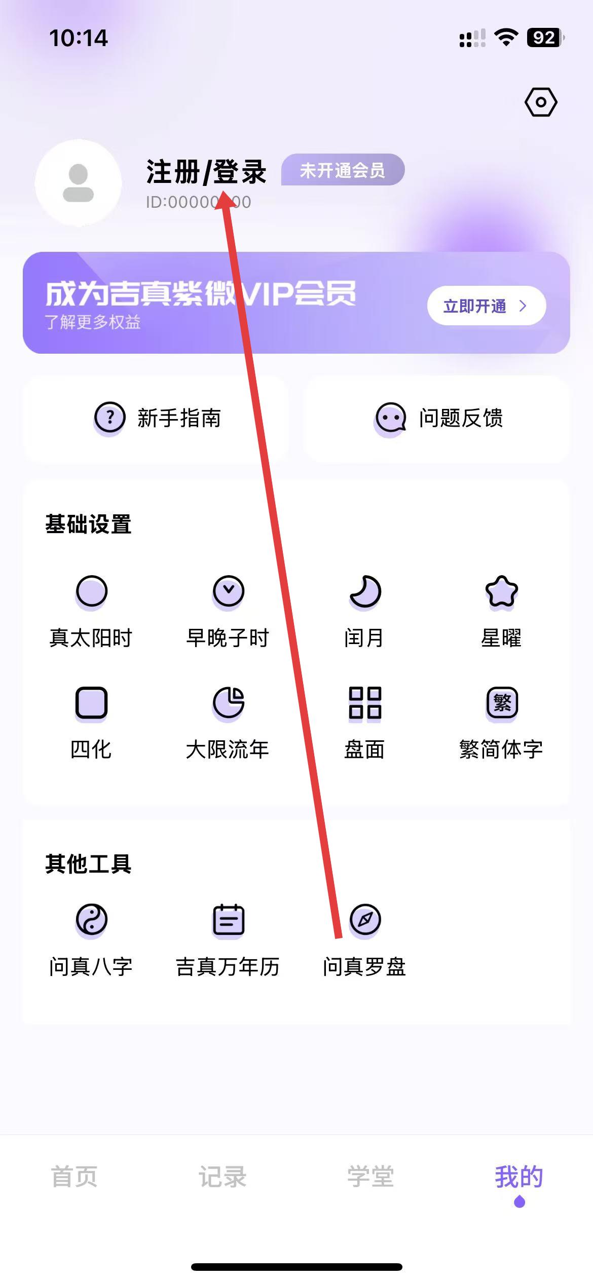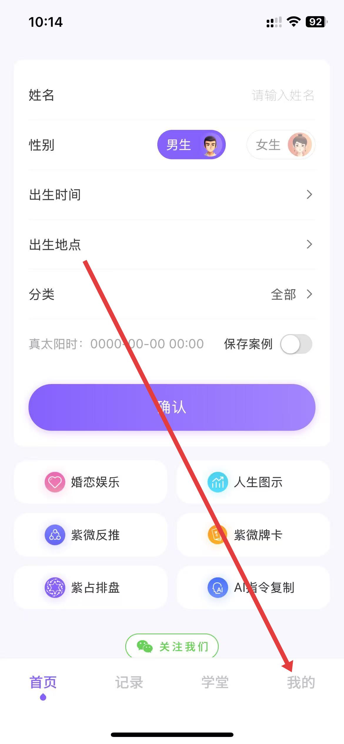 1、打開吉真紫薇app,點(diǎn)擊底部導(dǎo)航欄中的我的選項(xiàng)。