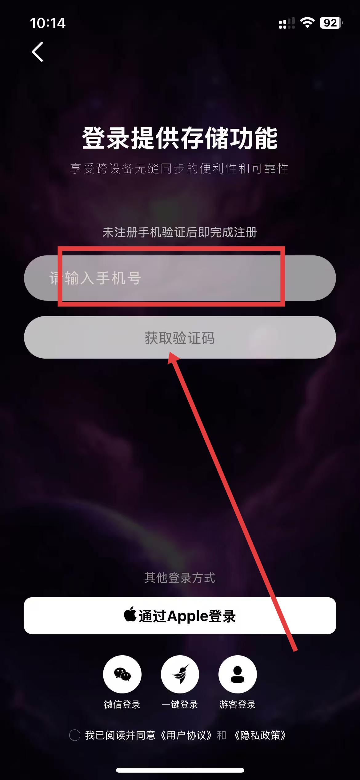 3、在登錄注冊頁面,輸入手機(jī)號(hào),點(diǎn)擊獲取驗(yàn)證碼。