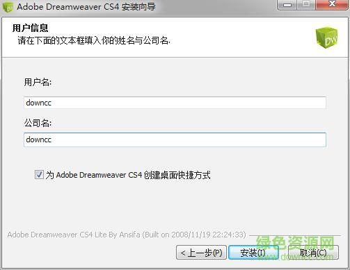 3.設(shè)置用戶名和公司名,任意都行,這里小編設(shè)置為downcc