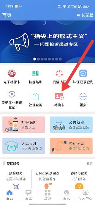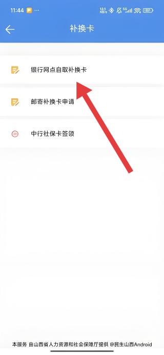 1、在民生山西APP首頁(yè),點(diǎn)擊補(bǔ)換卡功能圖標(biāo),進(jìn)入補(bǔ)換卡服務(wù)選擇頁(yè)面,啟動(dòng)社??ㄑa(bǔ)換流程。