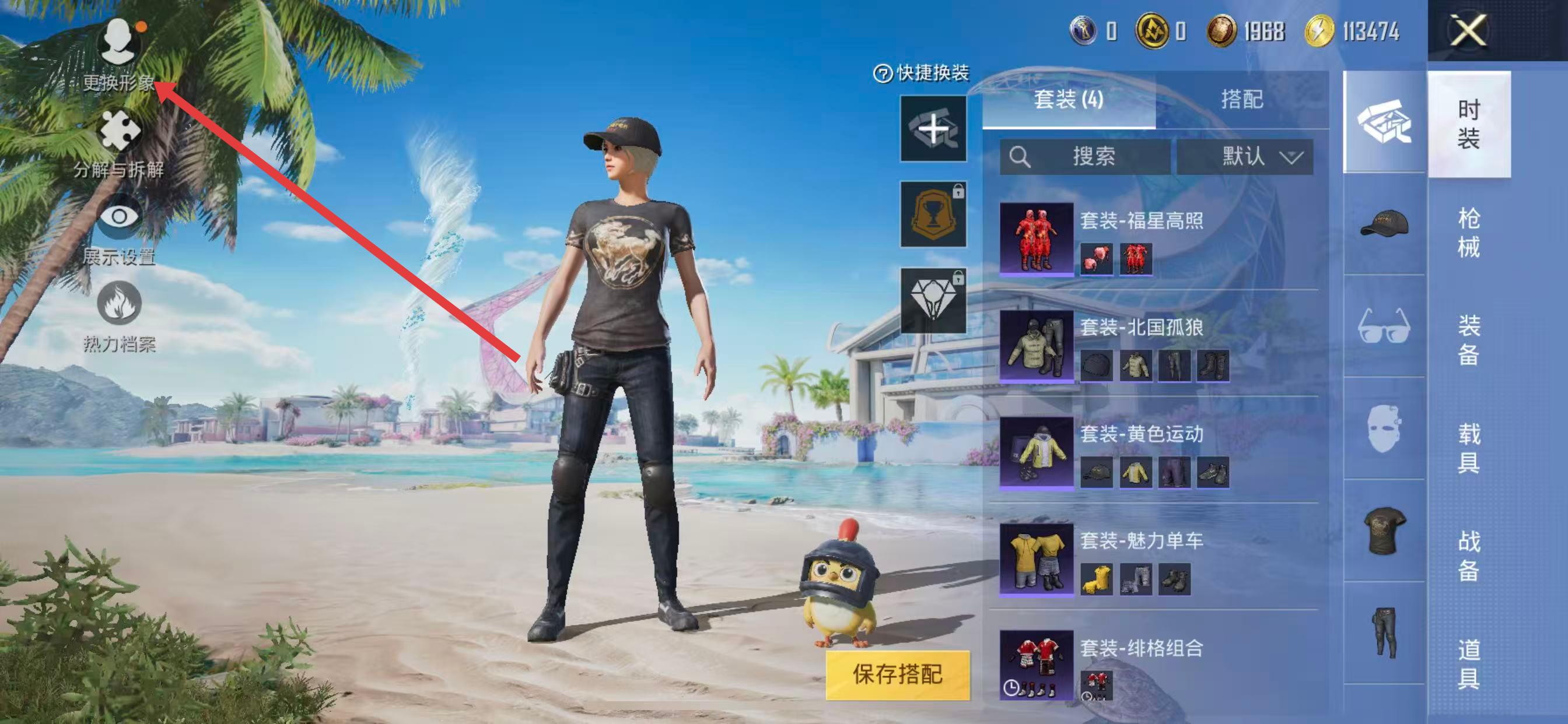 2、在倉庫界面中,點擊左上角的更換形象按鈕。