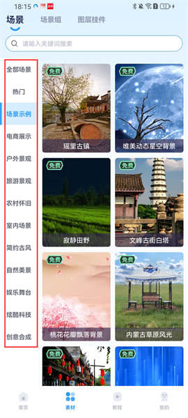 2、點擊素材欄目,給大家提供的超多豐富的素材,并且進行細致分類,各種電商展示、戶外場景、旅游場景等等,根據(jù)需求進行選擇下載;