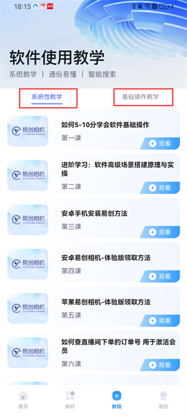 3、新手不會也不用怕,點擊教程會有基礎(chǔ)教學(xué)以及系統(tǒng)教學(xué),超多超多課程都是免費學(xué)習(xí),點擊觀看即可立刻學(xué)習(xí);