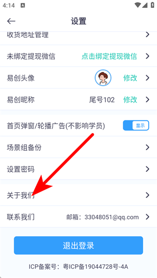3、在設(shè)置頁面點擊關(guān)于我們,進入關(guān)于我們頁面。