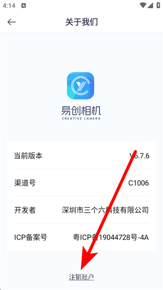 4、在關(guān)于我們頁面點擊注銷賬戶,按照提示完成易創(chuàng)相機賬號的注銷操作。