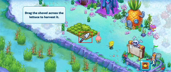 4、滑動(dòng)菜地上方出現(xiàn)的鏟子圖標(biāo),以進(jìn)行蔬菜的采摘;