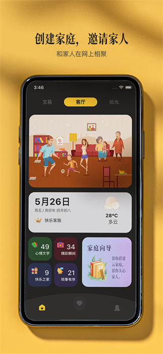 d、家人互動,提供了家庭動態(tài)的功能,可以了解家人的近況和心情,增進彼此的了解和親密度。
