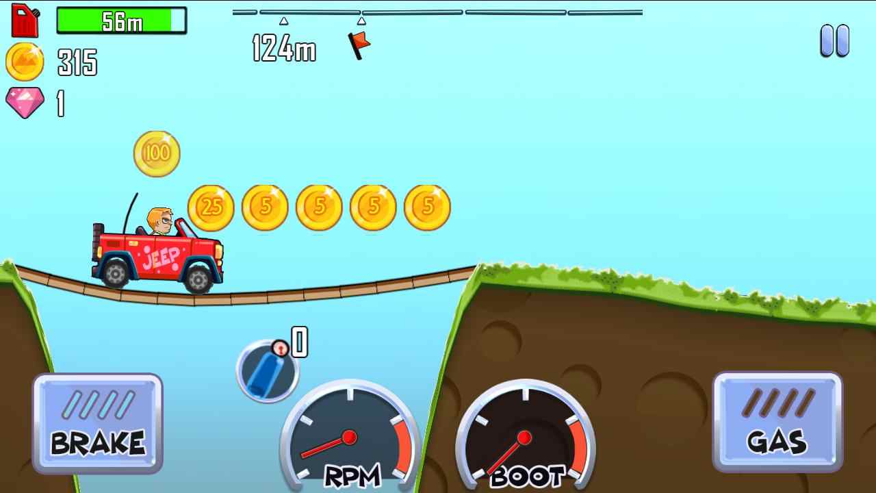 駕駛著高速行駛的賽車做出特技時很多人都夢想,這款游戲處處充滿了這種元素,你需要駕駛你的登山車去完成各種關(guān)卡,采集路上的金幣,同時你要保證你的油量是充足的,總的來說,這是一款非常棒的游戲,登山車元素和速度的有機(jī)結(jié)合大大的增加了這款游戲的可玩性,這是一款適合各個年齡階段游玩的游戲,歡迎游玩。