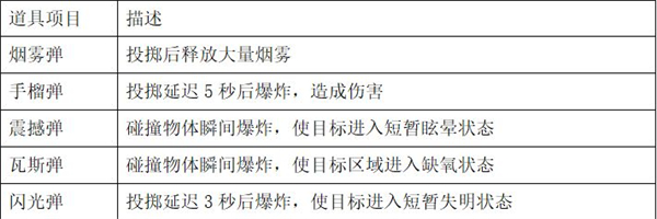 大家雖然可以在商店中購買道具,但對萌新來說太“奢侈”了。所以還是在地圖中的投擲物品箱和敵人手中繳獲比較好。這里最推薦的是紫色震撼彈,可以讓敵人被控幾秒,不論是進攻還是跑路都非常好用。至于其他投擲類道具,各位螢火蟲可以參照下面的表格,按喜好搭配。
