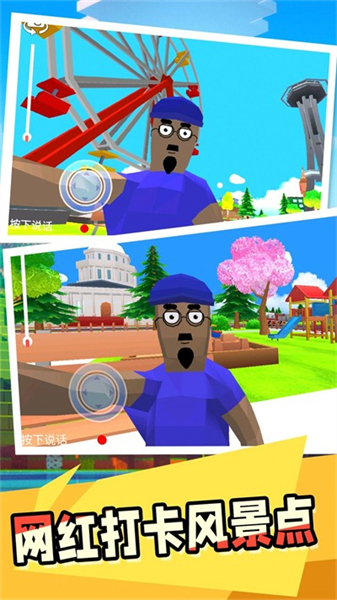 網(wǎng)紅小鎮(zhèn)是沙盒風(fēng)格的經(jīng)營游戲,玩家在游戲里面可以變身為網(wǎng)紅來完成自己的任務(wù),不斷的探索小鎮(zhèn)里面的每一個場景來完成不同的任務(wù)和挑戰(zhàn),可以收集新的材料來打造全新酷炫建筑物,來吸引更多的客人前來游玩。