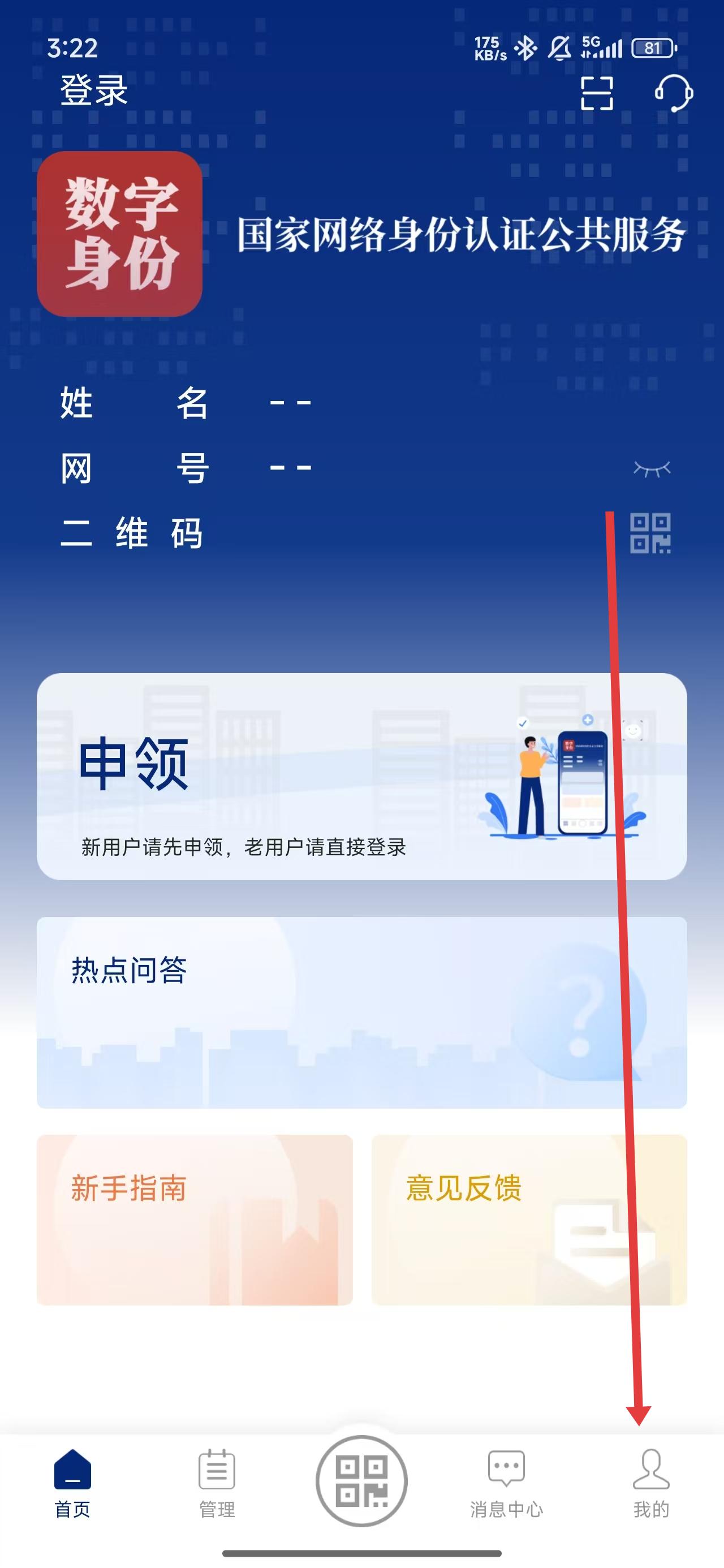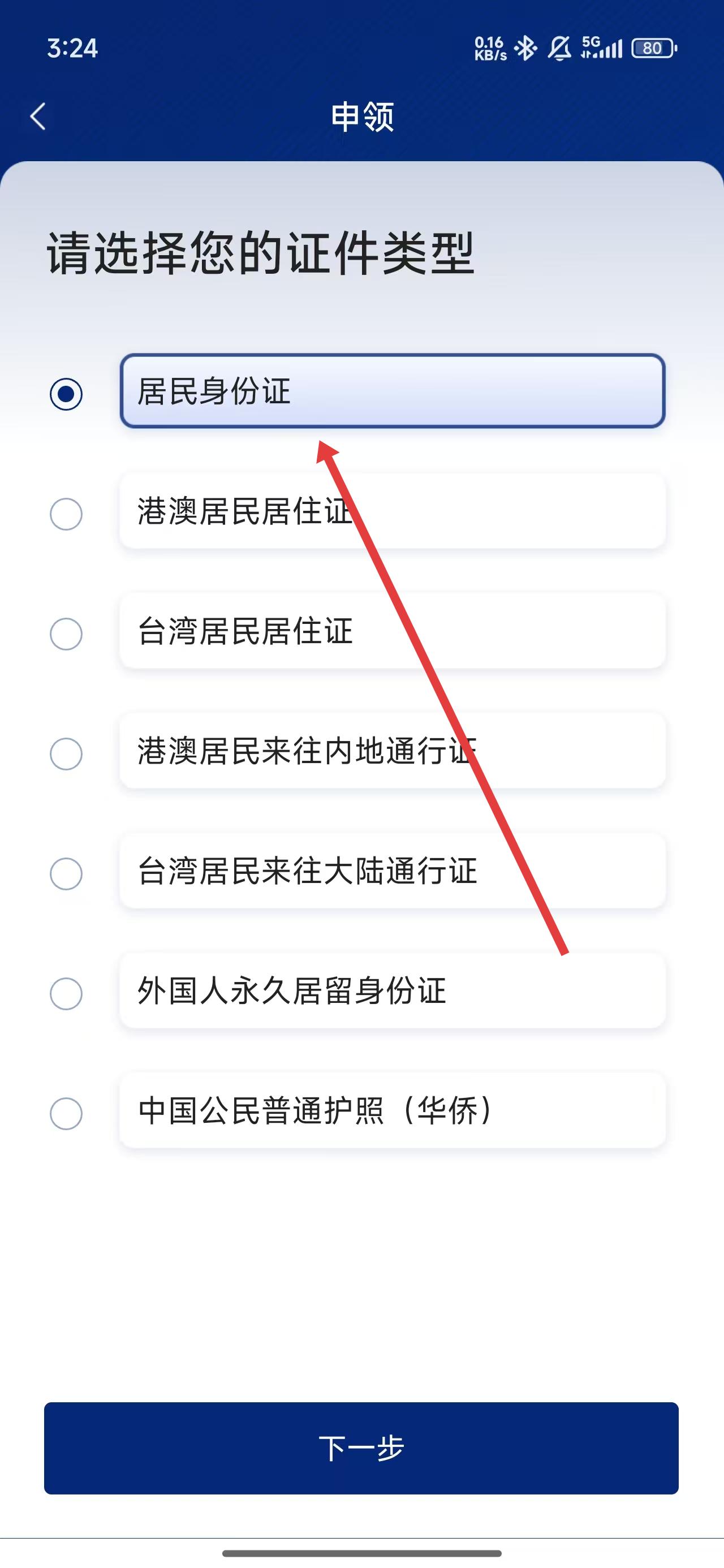4、跳轉(zhuǎn)到申領(lǐng)頁面中,可以選擇點擊使用居民身份證進行注冊。