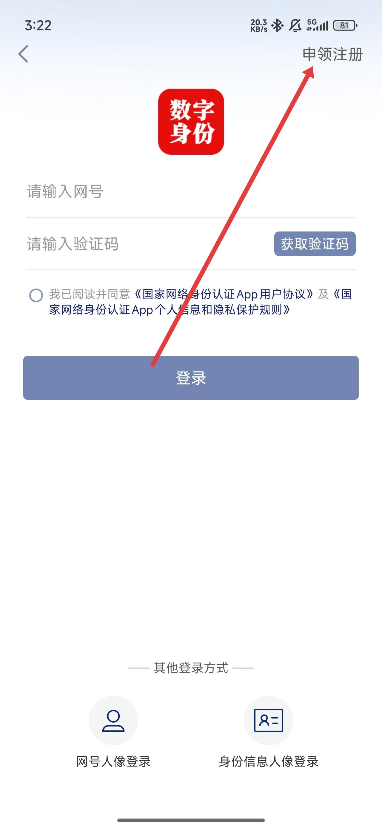 3、在進入到登錄頁面后,若沒有賬號可以點擊右上角申領(lǐng)注冊按鈕,進行注冊。