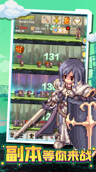 攻下這座塔游戲是一款2D像素風(fēng)格的動(dòng)作冒險(xiǎn)游戲,這是一款2D的闖關(guān)游戲,玩家需要布置好自己的陣容,并且要對自己陣容英雄的屬性進(jìn)行不斷地升級,玩家需要不斷地沖關(guān),游戲非常的有趣,隨著你闖關(guān)的進(jìn)度,你遇到的怪物會(huì)逐漸的變強(qiáng),對這款游戲感興趣的話不要猶豫,快來下載吧。
