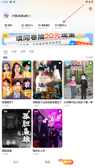 2、進入個人主頁內(nèi),找到并點擊客服中心的按鈕。