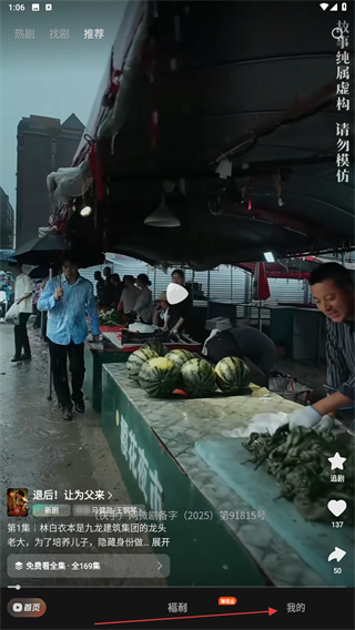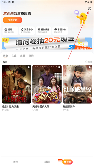 1、啟動喜番短劇的APP,進入首頁點擊下方我的按鈕。